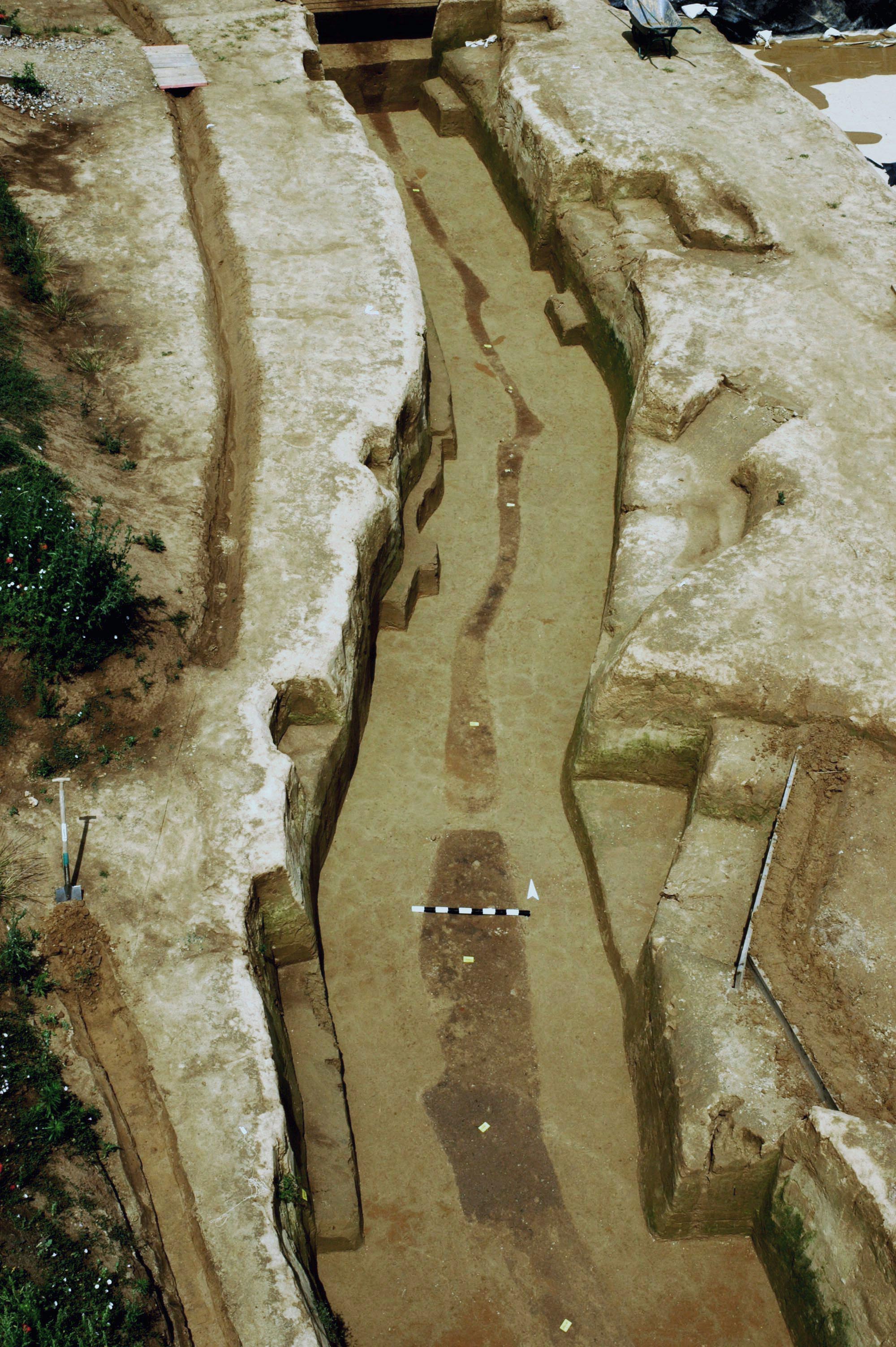 Abb. 5: Leicht gebogene, schmale Langgrube im äußeren Grubenring auf Niveau Planum 16. |
