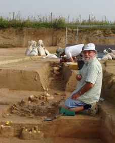 Die Negativausgrabung, durchgeführt von Christian Jeunesse (Straßburg), Bruno Boulestin (Bordeaux), Jean-Paul Cros (Agde) (Abb. 3) und Rose-Marie Arbogast (Straßburg) erbrachte eine beeindruckende Befundsituation, bei der auch Details wie förmlich senkrecht an der Grubenwand „klebende“ Knochen und kleinere Knochenensembles beobachtet werden konnten.